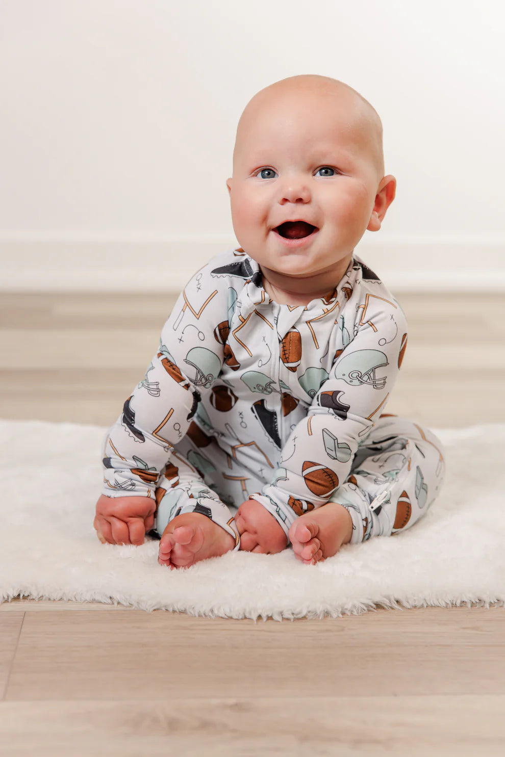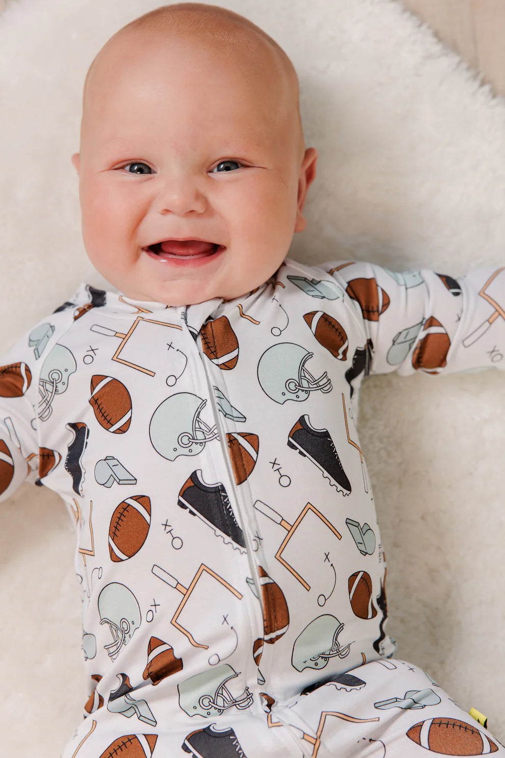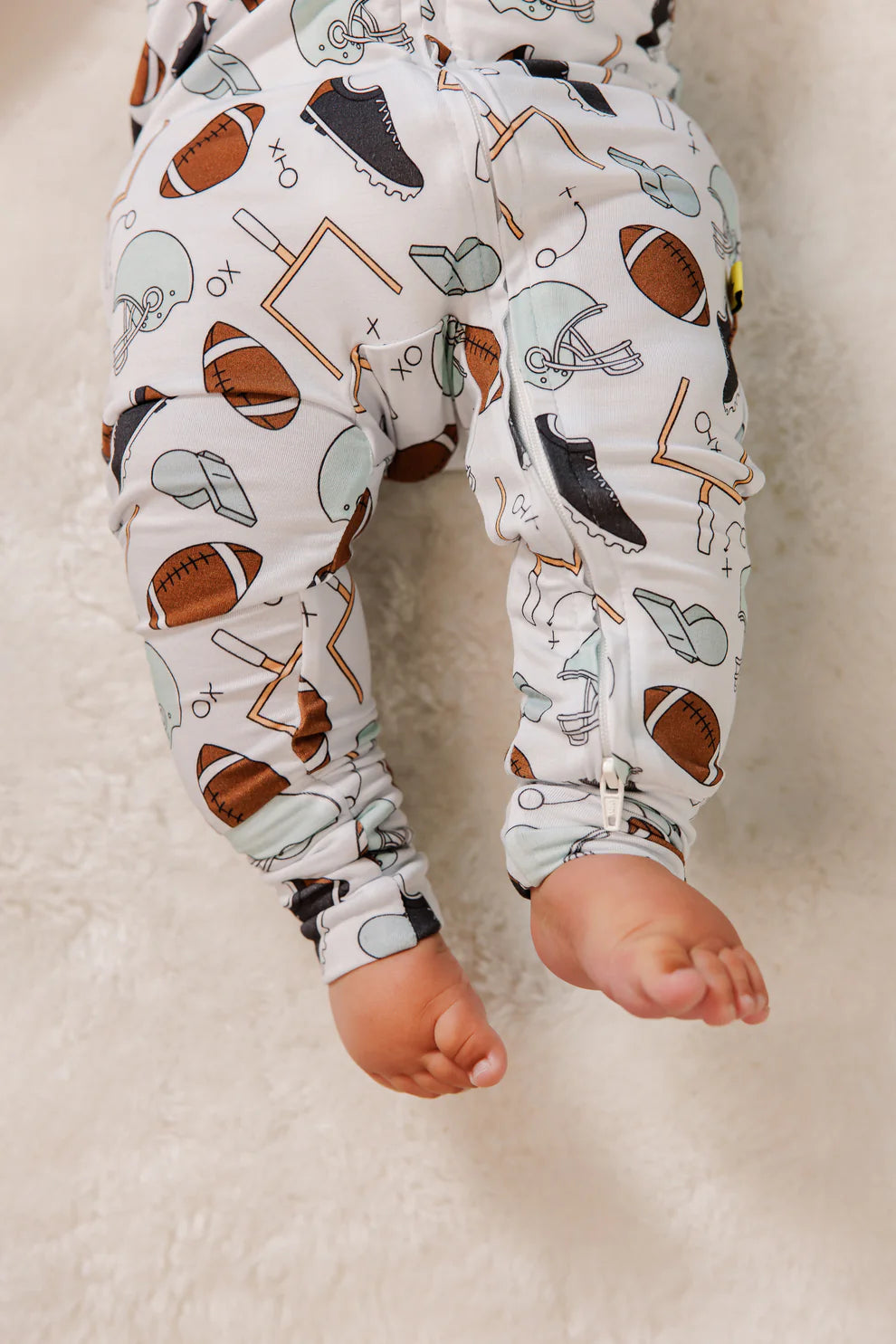 Football dreams start early, especially when your baby’s zipped up in the ultimate mini uniform. This one’s got strategy scribbles, whistles, and just enough toughness to balance out those chubby cheeks. Total touchdown.